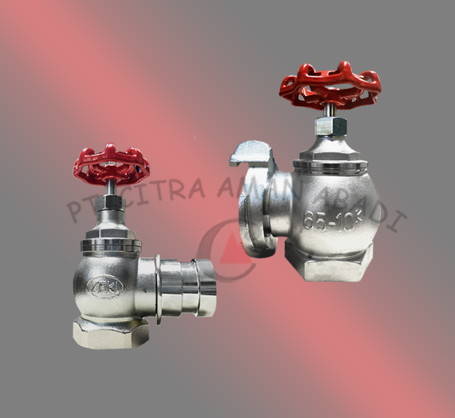 Hydrant valve atau biasa di sebut angle valve, landing valve, atau kran hydrant untuk tekanan kerja 10 bar memilki 2 jenis ukuran yaitu 1,5″ dan 2,5″ terdapat 2 jenis pilihan kopling dengan material chrome.